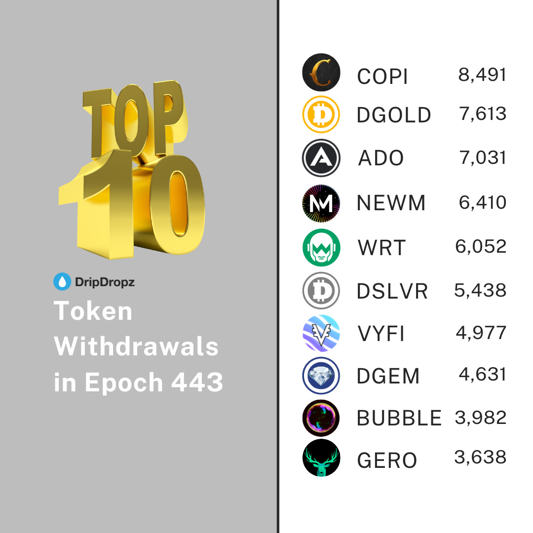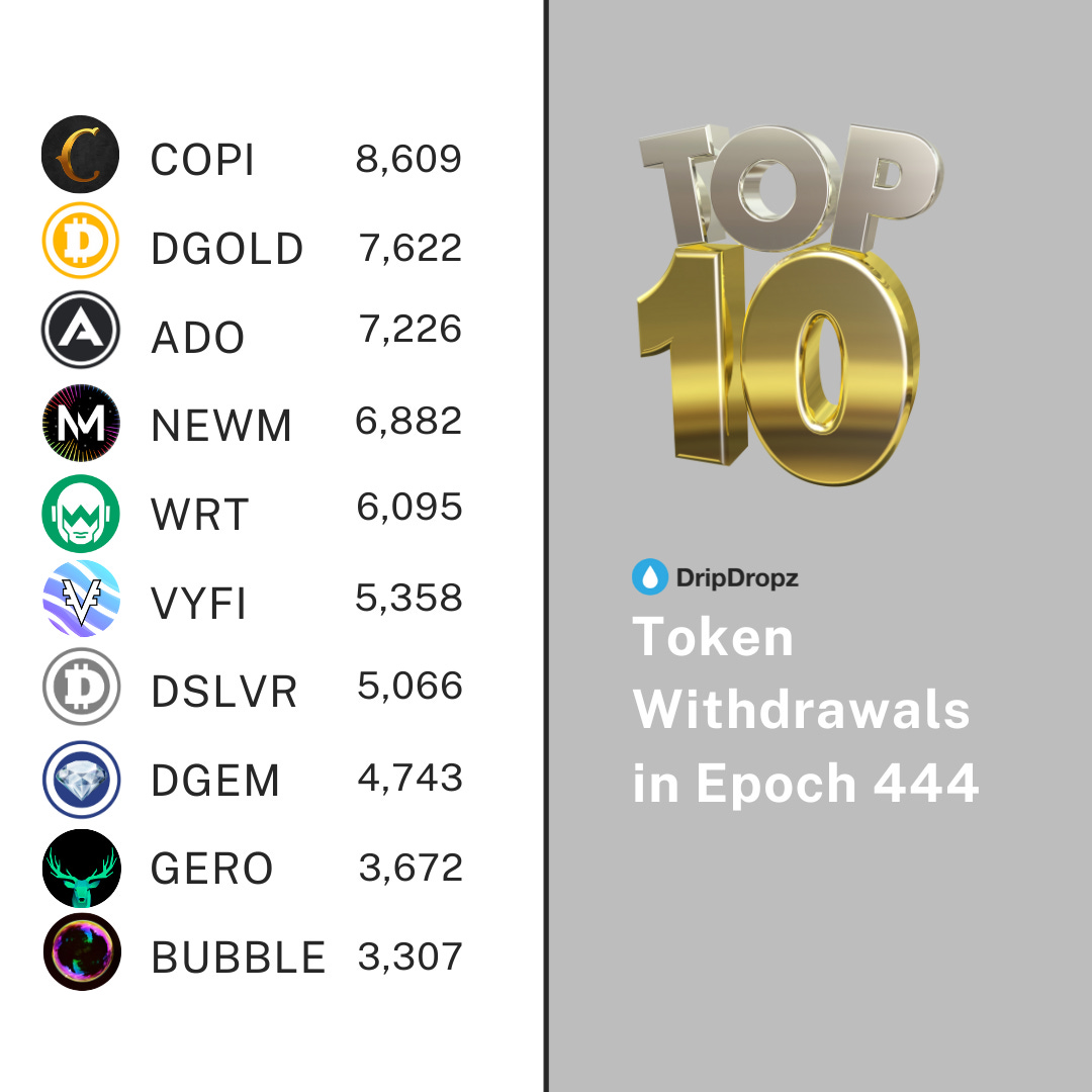 DripDropz is the fountain delivering a torrent of top tokens! Epoch 444 saw withdrawals explode as pioneers flock to tap into premier projects.