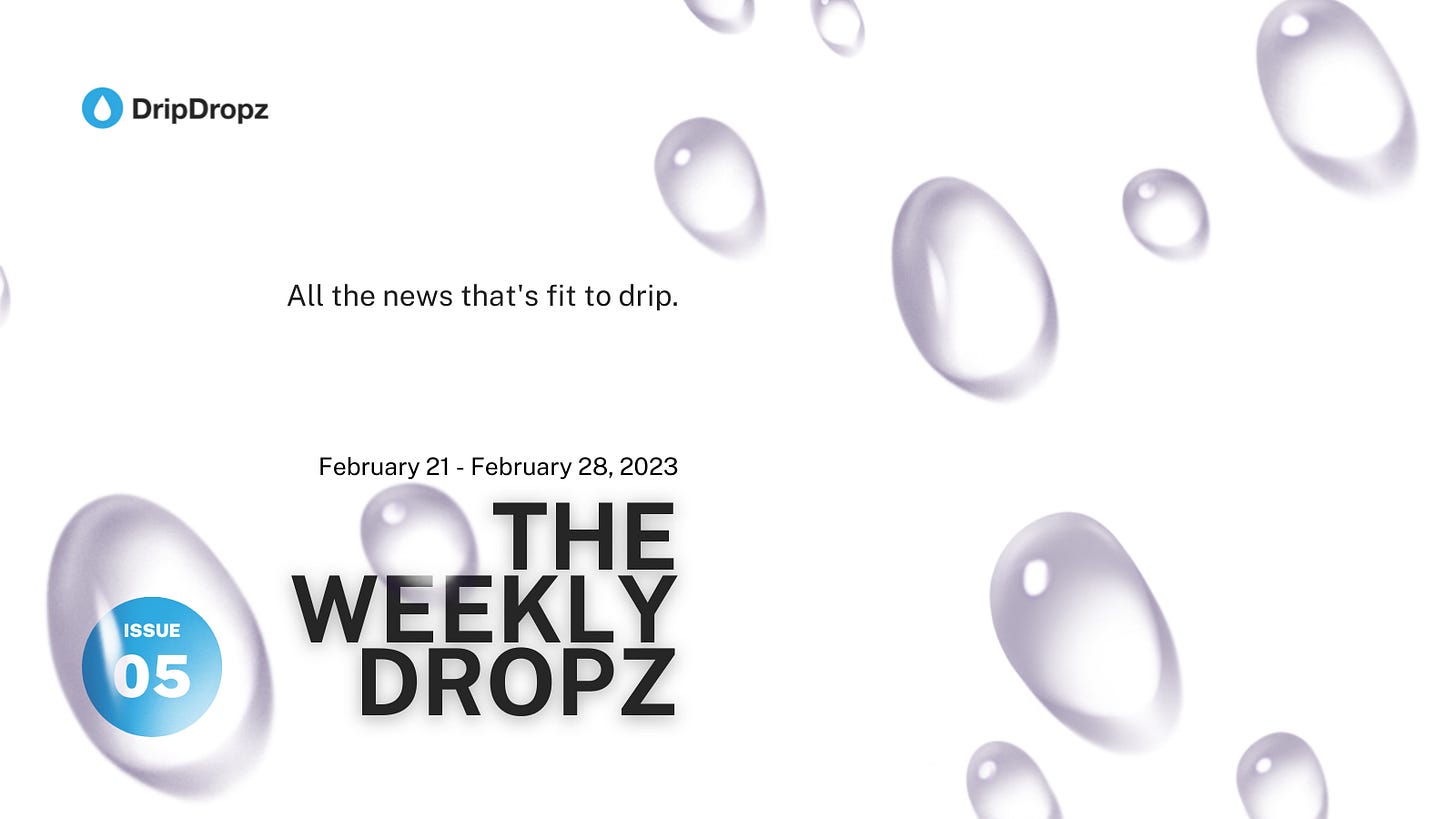 Welcome to the fifth edition of the Weekly Dropz newsletter, where we bring you the latest and greatest from the DripDropz community. Step into a world of innovation and excitement with our latest update! From thrilling events to groundbreaking conversations, we had an extraordinary week that you won't want to miss. Our newsletter is your go-to source for all things DripDropz, providing you with the latest updates and developments in our ever-evolving world.